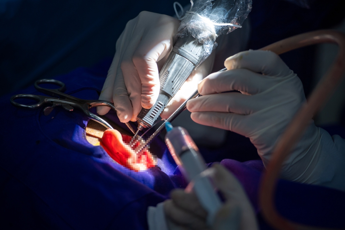 “Tiền sử mổ nhiều lần khiến giải phẫu thay đổi, sẹo xơ, tổ chức viêm mạn tính kèm xương đặc ngà làm mọi thao tác khó hơn rất nhiều”, TS.BS Nguyễn Hoàng Huy nhận định.