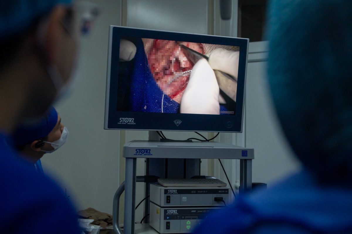 Theo TS Huy, việc xử lý ổ viêm trước là bước bắt buộc. “Nếu còn viêm, nguy cơ nhiễm trùng sau mổ rất cao. Vì vậy, chúng tôi xử trí tai phải trước, rồi mới chuyển sang cấy ốc tai bên trái”, chuyên gia này nói.
