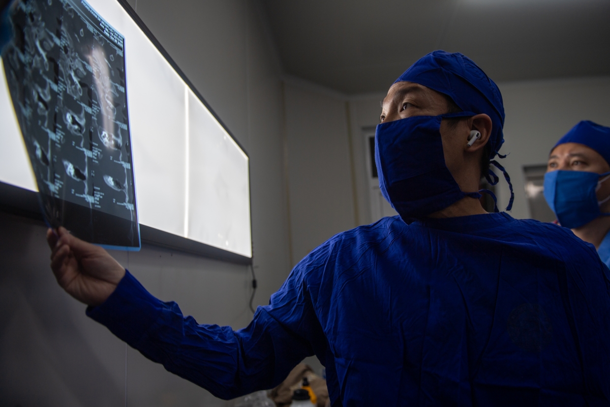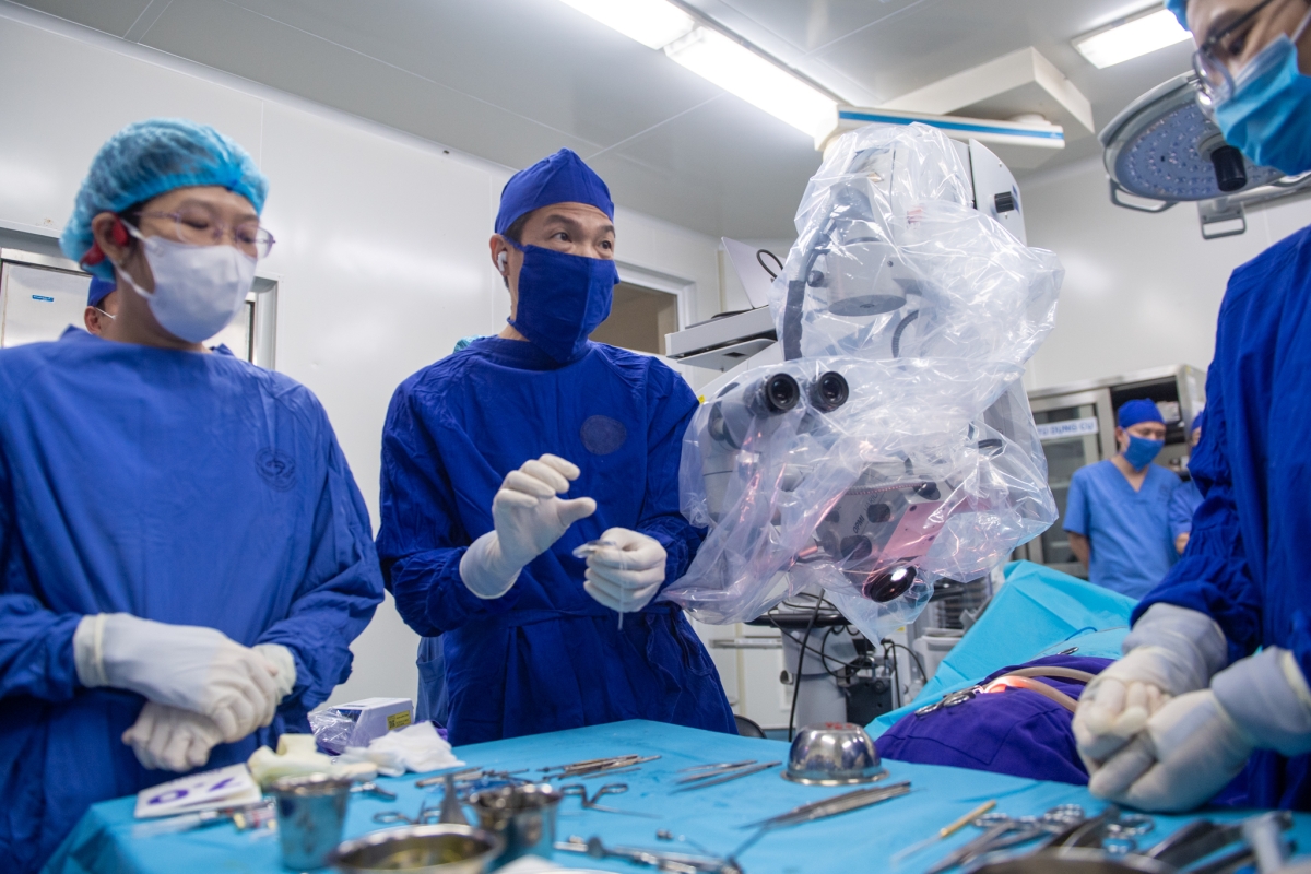 “Chúng tôi phải chèn rất kỹ quanh điện cực để kiểm soát rò dịch não tủy, giảm nguy cơ viêm màng não sau mổ”, TS Huy nói.