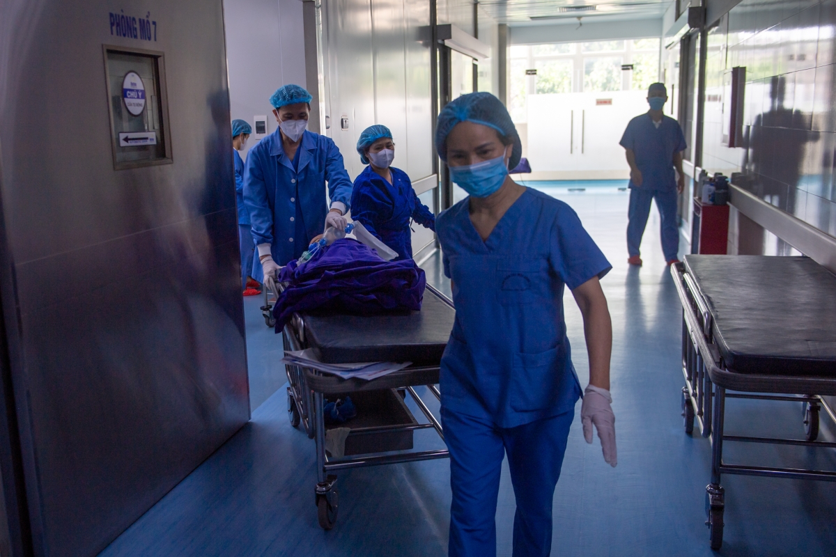 8h55, bệnh nhi được đưa vào phòng mổ. Bác sĩ gây mê áp mặt nạ gây mê lên khuôn mặt nhỏ. Chỉ vài giây sau, em lịm dần, trong khi các thành viên ê-kíp rà soát lại hồ sơ, kiểm tra lần cuối các thông số và dụng cụ.