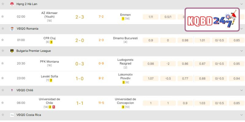 KQBD247 hiển thị kết quả bóng đá trực tuyến và tỷ số live