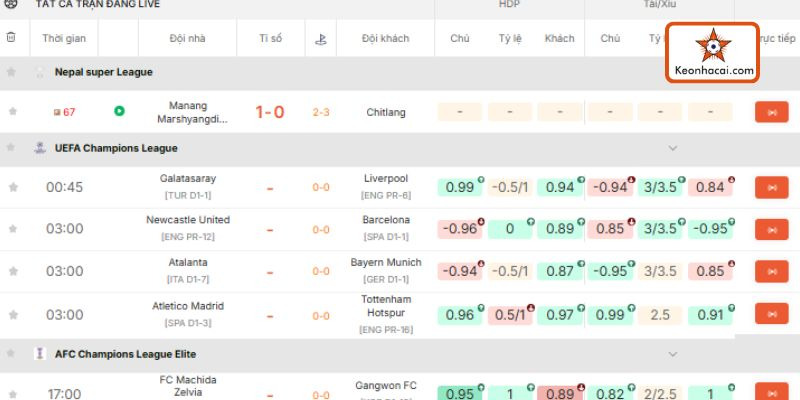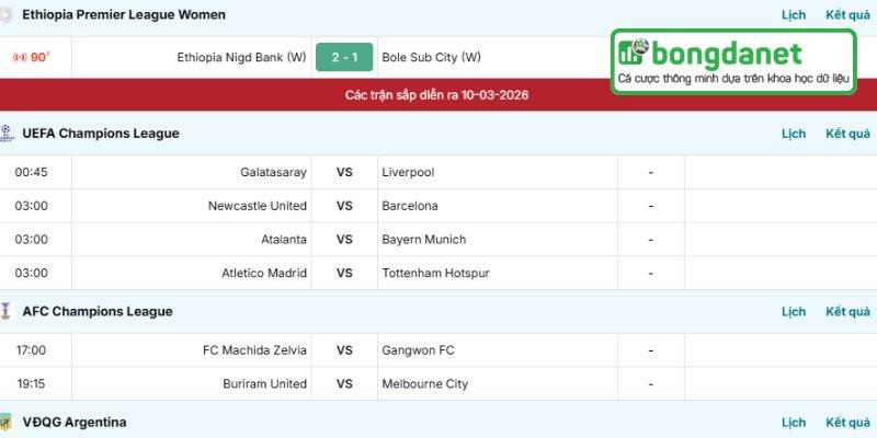 BongdaNET cập nhật tỷ lệ kèo nhà cái và kết quả bóng đá trực tuyến