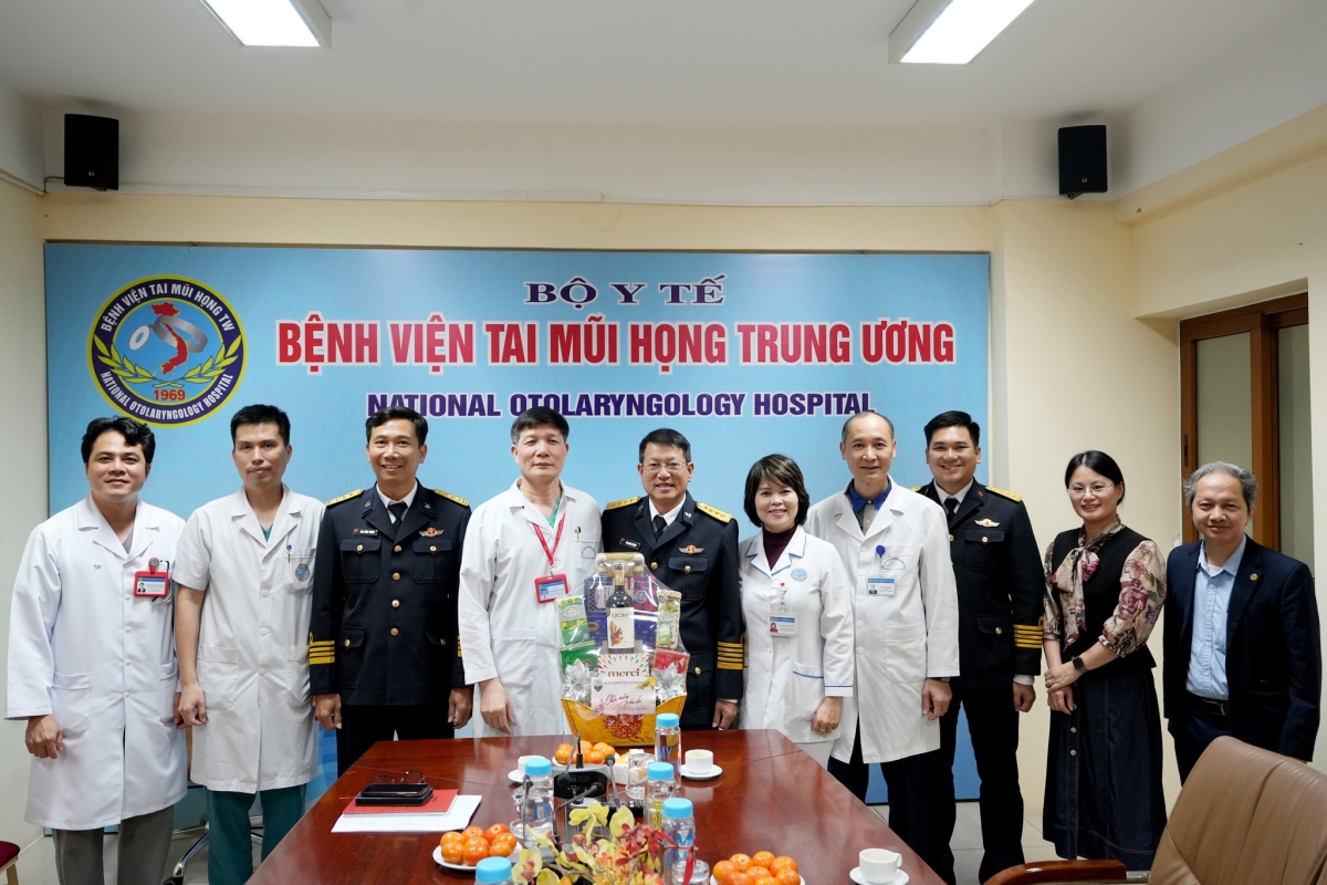 Đón tiếp Đoàn công tác, về phía Bệnh viện Tai Mũi Họng Trung ương có PGS.TS Phạm Tuấn Cảnh – Giám đốc Bệnh viện cùng các đồng chí trong Đảng ủy, Ban Giám đốc và Ban Chấp hành Công đoàn. Đoàn Bộ Tư lệnh Hải quân Vùng 4 do Đại tá Bùi Quang Thuyên – Phó Tư lệnh Vùng làm Trưởng đoàn.