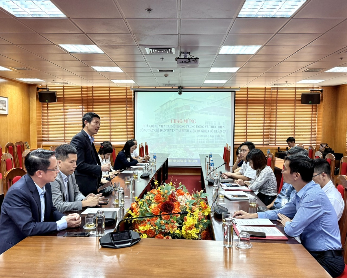 Nhằm tăng cường hỗ trợ chuyên môn cho các đơn vị tuyến dưới, ngày 24/10/2025, Đoàn công tác của Bệnh viện Tai Mũi Họng Trung ương do PGS.TS Nguyễn Quang Trung – Phó Giám đốc Bệnh viện làm Trưởng đoàn đã có chuyến thăm và làm việc tại Bệnh viện Đa khoa (BVĐK) số 1 tỉnh Lào Cai, trong khuôn khổ hoạt động chỉ đạo tuyến theo Đề án 1816 năm 2025.