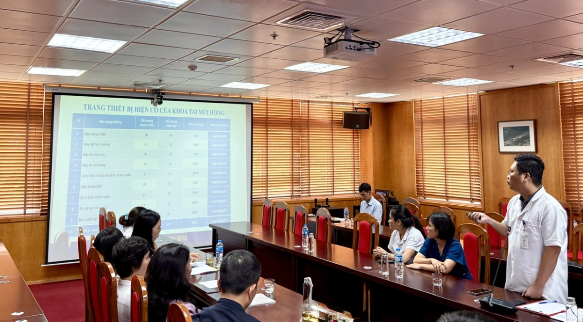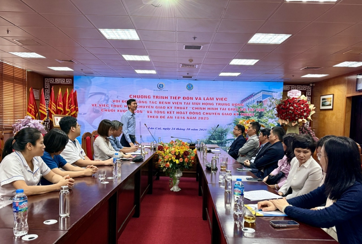 Tại buổi làm việc, BS Phùng Duy Anh – đại diện Khoa Tai Mũi Họng, BVĐK số 1 tỉnh Lào Cai đã báo cáo kết quả tiếp nhận và triển khai kỹ thuật theo Đề án 1816. Sau thời gian đào tạo 3 tháng tại Bệnh viện Tai Mũi Họng Trung ương, bác sĩ và đội ngũ khoa đã làm chủ bước đầu kỹ thuật “Chỉnh hình tai giữa có tái tạo chuỗi xương con”, đồng thời áp dụng thành công trong điều trị thực tế tại khoa. Ngoài ra, BVĐK số 1 tỉnh Lào Cai cũng duy trì phối hợp hội chẩn, cập nhật kiến thức chuyên môn và đề xuất tiếp tục được hỗ trợ đào tạo các kỹ thuật nâng cao trong lĩnh vực Tai – Họng – Thanh quản trong thời gian tới.