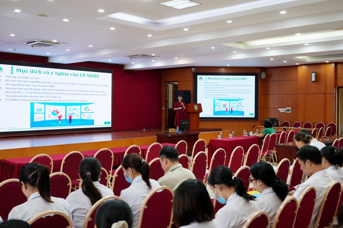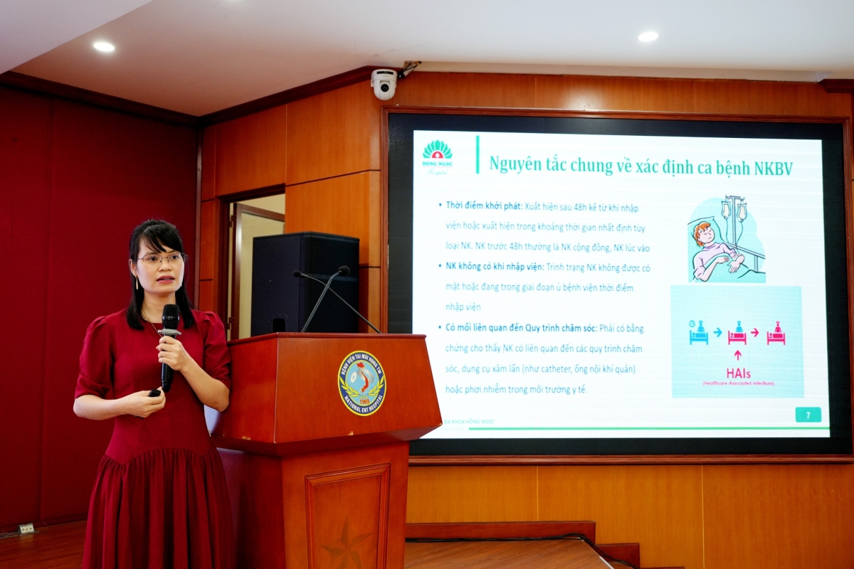Tại chương trình, ThS.BSNT Phạm Thị Thoa nhấn mạnh rằng giám sát nhiễm khuẩn bệnh viện là hoạt động mang tính hệ thống và liên tục, giúp phát hiện, phân tích và đánh giá nguy cơ nhiễm khuẩn, từ đó đưa ra biện pháp can thiệp kịp thời. Bên cạnh đó, bác sĩ cũng làm rõ các nguyên tắc cơ bản của giám sát chủ động – trọng điểm, tiêu chuẩn chẩn đoán bốn loại nhiễm khuẩn thường gặp (nhiễm khuẩn phổi, nhiễm khuẩn tiết niệu, nhiễm khuẩn huyết và nhiễm khuẩn vết mổ) theo hướng dẫn của WHO 2024 và Thông tư 16/2018/TT-BYT.