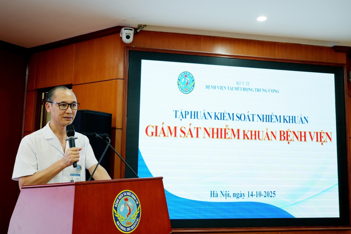 Tập huấn kiểm soát nhiễm khuẩn là nội dung được triển khai thường xuyên, liên tục của toàn ngành Y tế nói chung và của Bệnh viện Tai Mũi Họng Trung ương nói riêng. Buổi tập huấn lần này được tổ chức nhằm cập nhật kiến thức chuyên môn, củng cố kỹ năng giám sát nhiễm khuẩn cho đội ngũ nhân viên y tế, đồng thời tăng cường năng lực phát hiện sớm, đánh giá và can thiệp kịp thời các nguy cơ nhiễm khuẩn trong bệnh viện.