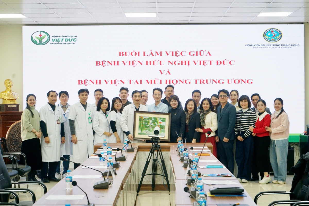 Chiều ngày 08/01/2026, Đoàn công tác của Bệnh viện Tai Mũi Họng Trung ương đã có buổi làm việc và trao đổi kinh nghiệm chuyên môn tại Bệnh viện Hữu nghị Việt Đức về công tác quản lý, tổ chức và chăm sóc người bệnh theo yêu cầu. Chương trình diễn ra trong không khí cởi mở, thân thiện, thể hiện tinh thần cầu thị, học hỏi và hợp tác giữa các bệnh viện tuyến Trung ương, cùng hướng tới mục tiêu không ngừng nâng cao chất lượng dịch vụ khám, chữa bệnh.