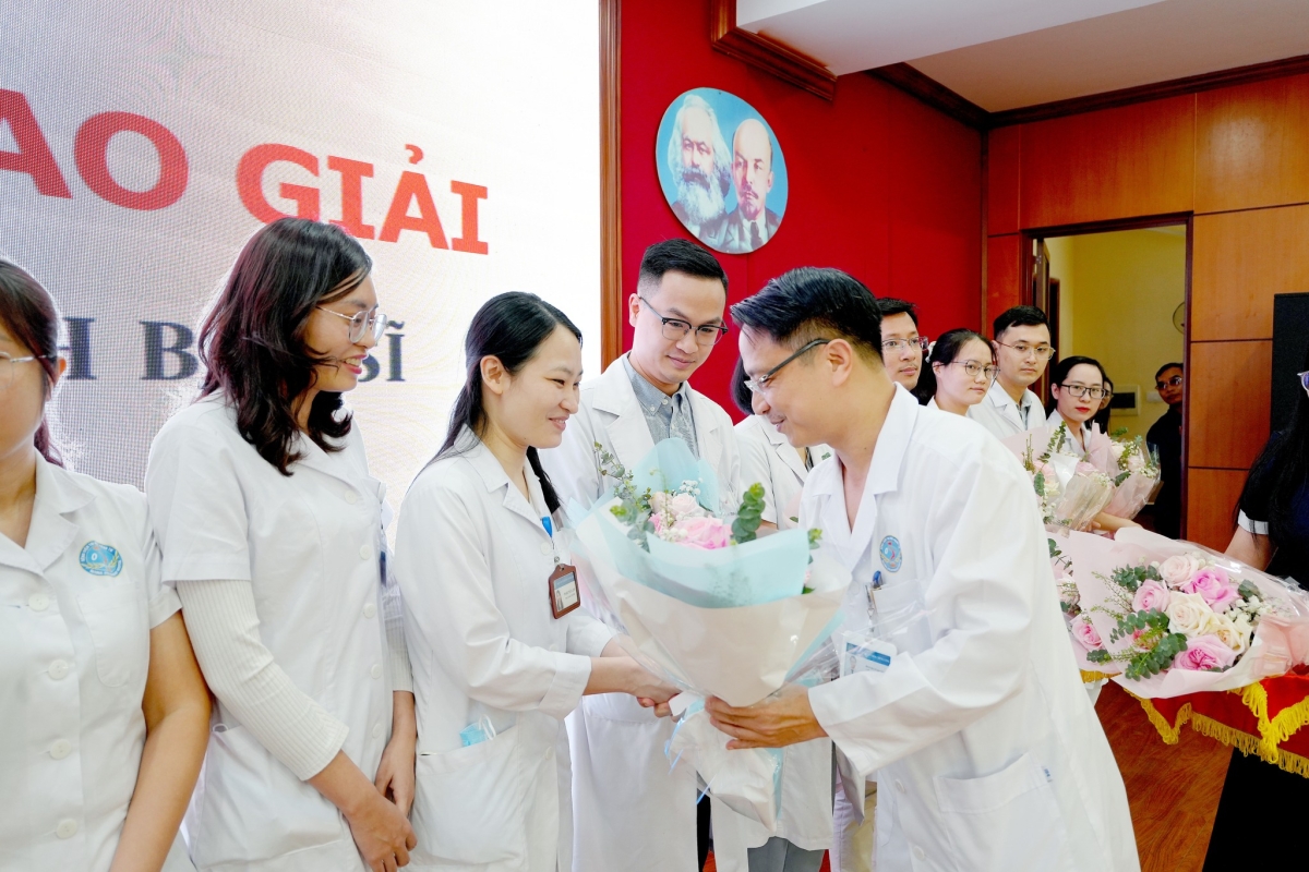 PGS.TS. Nguyễn Quang Trung - Phó Giám đốc Bệnh viện trao Giải Ba cho 3 thí sinh