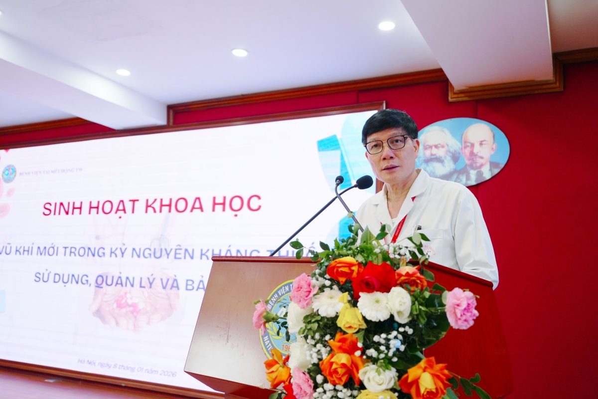 Nhằm cập nhật kiến thức chuyên môn, chia sẻ kinh nghiệm thực tiễn và tăng cường phối hợp đa ngành trong sử dụng kháng sinh hợp lý, an toàn và hiệu quả, ngày 08/01/2026, Bệnh viện Tai Mũi Họng Trung ương tổ chức buổi sinh hoạt khoa học Sinh hoạt khoa học chuyên đề dược lâm sàng với chủ đề: Vũ khí mới trong kỷ nguyên kháng thuốc – Sử dụng, quản lý và bảo tồn.