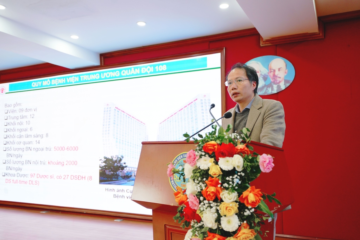 ThS. DS Phạm Văn Huy – Trưởng ban Dược Lâm sàng, Khoa Dược, Bệnh viện Trung ương Quân đội 108 chia sẻ kiến thức tại buổi sinh hoạt khoa học
