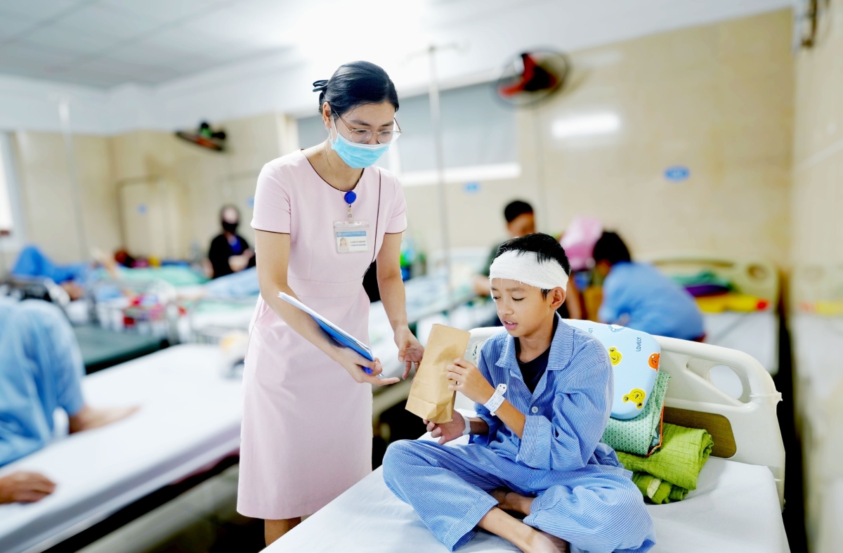 Phụ huynh bệnh nhi Nguyễn Thị Tâm Đ., 9 tuổi (Thành Sen, Hà Tĩnh) đang điều trị viêm tai xương chũm tại khoa Tai Mũi Họng Trẻ em chia sẻ: Tôi rất xúc động khi Bệnh viện đã quan tâm, tặng quà động viên nhân dịp này. Gia đình vô cùng biết ơn các bác sĩ vừa tận tâm điều trị cho cháu, vừa hỗ trợ, khích lệ tinh thần gia đình...